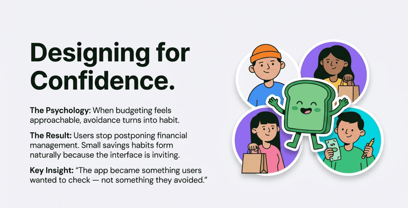 So we introduced “Breaddy,” an AI assistant designed to talk like a helpful friend, not a financial advisor. Breaddy explained spending habits, suggested small improvements, and helped users stay on track with goals — one step at a time.