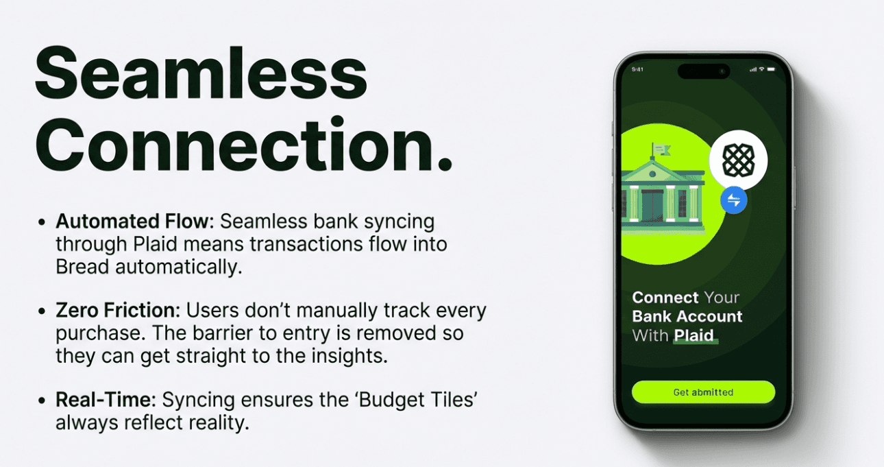 With seamless bank syncing through Plaid, transactions flowed into Bread automatically. Users didn’t have to manually track every purchase. They could simply open the app and understand their spending patterns.
